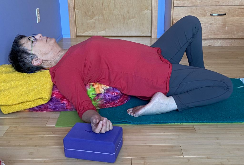 I was surprised to discover that I have written many times about Supta Virasana (reclining hero pose). Recently I’ve been thinking about what a key prep pose it is for pranayama. This older post has some good details, though, and I’ll try not to repeat them.