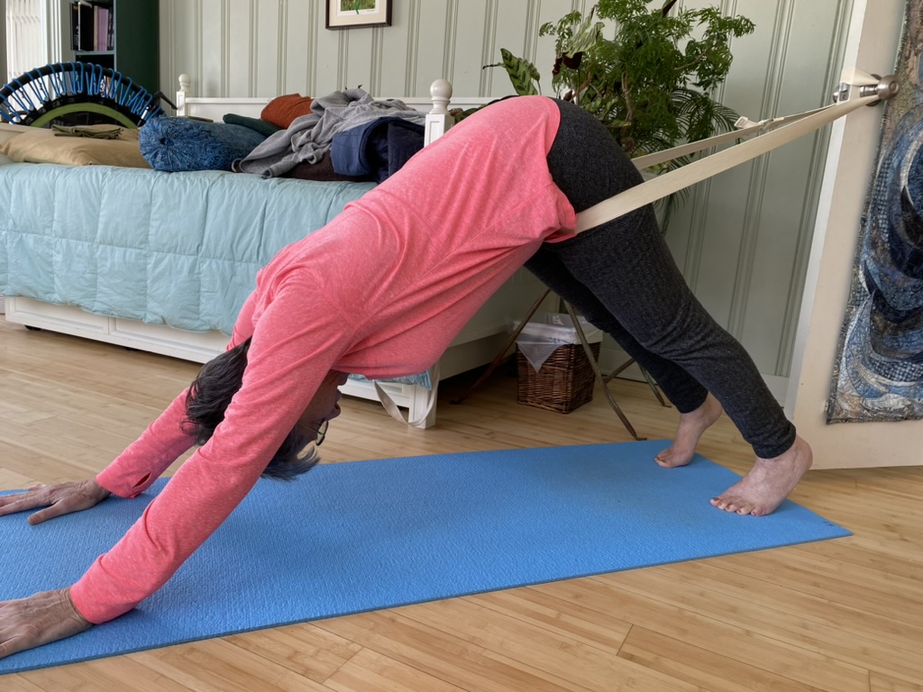 You probably have a strap among your props, and if you don’t it’s easy to find one, at your yoga studio or at Target, or maybe even at the grocery store. I like mine to be at least 8 feet long. Here are a few things you can do in your home practice with a strap. PLEASE PLEASE be careful with the first two poses. Tug and test the strap before you get in the pose!